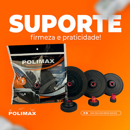 Suporte para boinas de polimento fixa fácil Polimax: Este suporte é uma ferramenta específica para ser utilizada na conexão entre a boina de polimento com sistema fixa fácil e a politriz. Produzido com alta tecnologia e design exclusivo e sistema de fixação mecânica e rosca 5/8’ ou 14 mm. Possuí ótima fixação, além de ter acabamento de borracha que garante mais segurança no polimento.